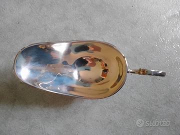 Salsiera argentata : lunghezza totale con manico cm 16, altezza minima cm 4, altezza massima cm 7, peso gr 160