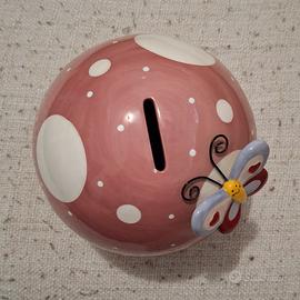 Salvadanaio a forma di fungo in cermica rosa antico. come nuovo 15 x 15 cm circa