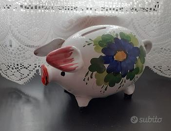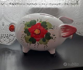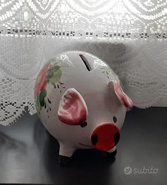 Vendo salvadanaio a forma di maialino, in ceramica made in Italy con decori dipinti a mano