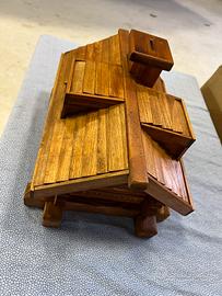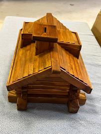 Salvadanaio in legno fatto a mano a forma di casetta di montagna.dimensioni 35 cm x 28 x altezza 25.Attenzione numero 2 pezzi disponibili ma il prezzo è l’uno