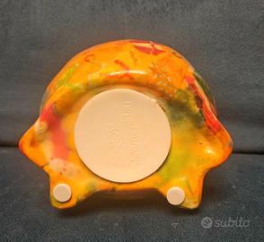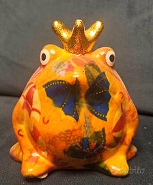 Salvadanaio Re Ranocchio, in ceramica colorata con diverse fantasie, con tappo svuota soldi. Marca Pomme Pidou. Fornito senza scatola. Dimensioni: 10x9x8 cm. Ne vendo due al prezzo di 10 ciascuno; 18 per entrambi.