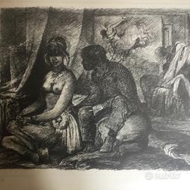 Litografia di Salvatore Fiume certificata in cornice in radica Preferisco consegna a mano, se spedisco tolgo vetro e cornice