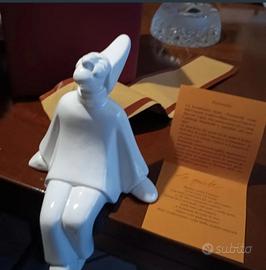 Bellissimo pulcinella in ceramica, opera d'arte di Salvatore Troiano La quiete, prodotto artigianale, nuovo nella sua confezione originale.