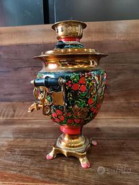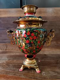 Samovar russo. Fabbricato negli anni '70. Dipinto a mano con motivi floreali e frutta, non funzionante ( ma ripristinabile) in quanto predisposto per lampada da tavolo, Valvola di chiusura /apertura rubinetto mancante.