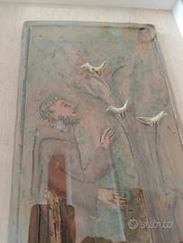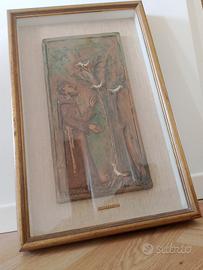San Francesco in legno di Berzoini, molto ben conservato. La cornice è in legno dorato. Dimensioni: 20 per 40 cm senza cornice; 30 per 50 cm con cornice. Il prezzo è trattabile.