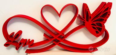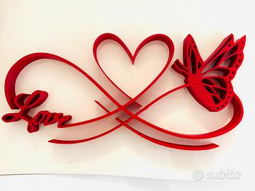 Rappresenta un infinito con un cuore centrale e lateralmente una farfalla e la scritta Love