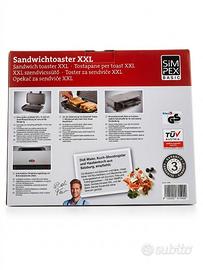 Vendo tostapane elettrico Simpex Basic modello XXL, ideale per chi ama i toast grandi e farciti. L'apparecchio è stato usato pochissimo ed è in condizioni estetiche e funzionali eccellenti (come da foto). L'oggetto viene fornito nella sua scatola originale. È stato testato e pulito, pronto all'uso. Potenza: 900Watt Dimensioni: 28x15 cm Consegna a mano a Verona NO SPEDIZIONE