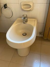 sanitari bagno in ceramica champagne smontati, completi di rubinetti comodi da caricare su mezzo di trasporto wc rotto come da foto, era installato riempendo il buco con del cemento