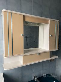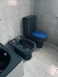 Set completo di sanitari da bagno in ceramica color blu/ottanio, stile retrò.