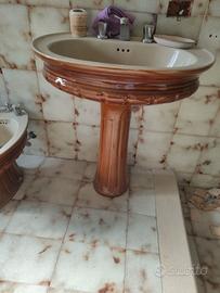 SANITARI CASSETTA ALTA COMPRESO DI VASO, BIDET, CASSETTA ALTA, LAVANDINO, ANNI '70 VINTAGE COLORE MARRONE FUME' VENDITA IN BLOCCO PER INFO 339/6806961