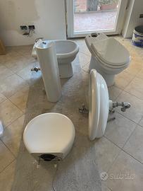 Cesame serie Aretusina. Lavello con colonna, bidet e vaso con vaschetta di scarico