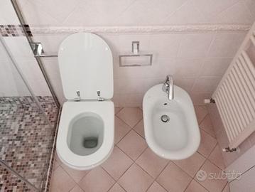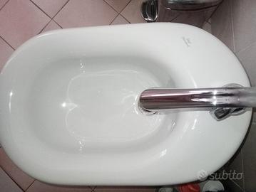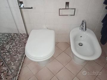 Coppia di sanitari in ceramica bianca mod. Fiorile, come da foto, ottimo stato completo di sedile in legno ingegnerizzato. Larghezza 35x58x40. No miscelatore. Ritiro a carico del compratore
