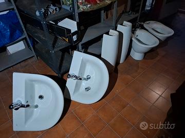 Bidet e Wc Ideal standard serie Fiorile con rubinetteria, piletta e scarichi.
