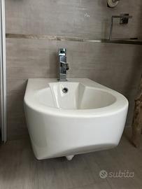 Coppia di sanitari, wc e bidet sospesi in ceramica bianchi, dimensioni 50x36 cm, marchio AXA. Vendo per rinnovo bagno. Coprivaso wc incluso. Vendibili anche separatamente.