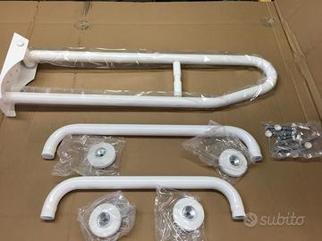 Bagno disabili come in foto, comprende wc, lavabo con staffe, maniglione ribaltabile con porta rotolo e due maniglie lineari. Materiale nuovo con scatola. Possibile spedizione