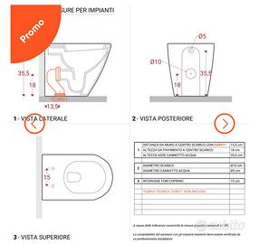 Sanitari filomuro in ceramica bianca vaso con bidet e sedile softclose - VolgaPlus Deghi. Nuovi mai installati, sono ancora confezionati negli scatoloni oroginali.