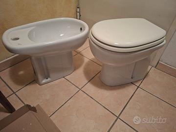 Vendita Coppia di sanitari wc+ bidet+coperchio wc come da foto, in ottimo stato. Sono disponibili in totale n. 3 coppie Previa visione in loco e consegna a mano.