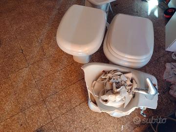 Due gabinetti completi e funzionanti in buono stato , un solo bidet accoppiato. Il secondo bidet purtroppo rotto, disponile il rubinetto se necessario.