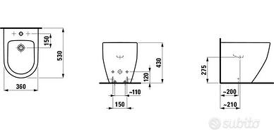 - Bidet a pavimento filo muro Laufen Pro, dimensioni 53x36 cm altezza centro scarico 12cm
