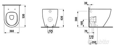 - WC a pavimento filo muro Laufen Pro, dimensioni 54x36 altezza centro scarico 18,5 cm altezza centro scarico acqua da cassetta 38 cm