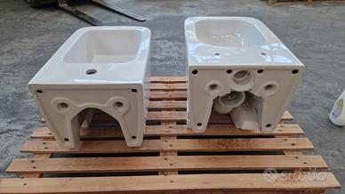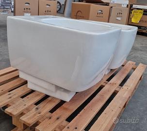 Sanitari (wc+bidet) sospesi in ceramica Hidra serie Kiub completi di kit di fissaggio e sedile soft close