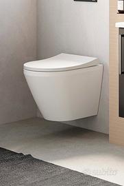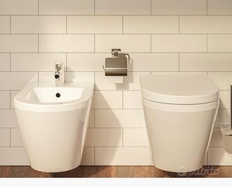 1 Wc sospeso rimex 54,5 bianco (volume di scarico 3/6 lt ) kit di fissaggio incluso e incluso anche il sedile wc soft-close bianco e 1 bidèt sospeso 54 bianco (allacciamento acqua interno) kit di fissaggio incluso