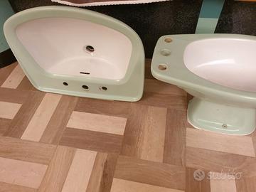 Per rifacimento bagno vendo servizi completi di sanitari colorati, usati, delle ditta SCALA e CESAME.Articoli vintage risalenti agli anni 70 in perfette condizioni.I set sono composti da lavandino con colonna, bidet e vater. Colori rimasti disponibili rosa, azzurro e un solo set bicolore ( interno bianco , esterno verde).Il tutto visionabile previo acquisto. Prezzo inserito riferito ad un solo set. Non spedisco.