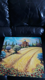 Immagine vista dai piedi della collina del Santuario di San Luca olio su legno di 50x50 cm del pittore bolognese Ramana.