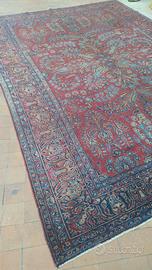 Antico tappeto Sarouck annodato a mano e dalle tonalità calde, con particolare dettaglio di colore rosa. Tinte vegetali, dimensione di 363x273 cm, con prevalenza di colori caldi come il rosso, il blu ed il rosa. Il tappeto presenta alcuni danni ed alcune macchie causate dall'usura legata alla sua antichità, ma rimane un tappeto di eccelsa fattura e pregio. rif 162. Origine Persia inizio '900.