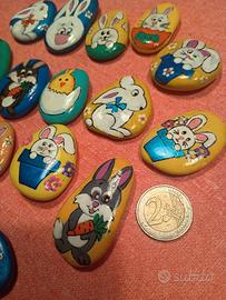 Sassi dipinti, decorati e smaltati a mano, utilizzando sassi di mare, ideali come segnaposto oppure come calamita, acquisto minimo tre pezzi, la richiesta è di 1,50 l'uno , con magnete euro 2 l'uno,nel mio armadio altre creazioni sempre realizzate con gli stessi materiali