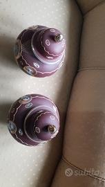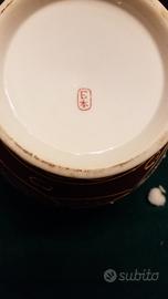 Rara Coppia Vasi SATSUMA MORIAGE Originali "Nippon" (1891-1921) – H 26cm – PERFETTI Descrizione: Splendida e rara coppia di vasi giapponesi con coperchio (giare) in ceramica Satsuma originale dell'epoca Nippon (fine '800 - inizio '900). Questi pezzi rappresentano l’eccellenza dell’artigianato giapponese destinato all'esportazione di inizio secolo. Caratterizzati dall'iconico marchio rosso “Nippon” (日本) sotto la base, la loro produzione è certificata tra il 1891 e il 1921, rendendoli oggetti di alto valore antiquariale con oltre un secolo di storia. Caratteristiche Principali: Tecnica Moriage: Decorazioni a rilievo eseguite a mano con incredibile precisione, che creano un effetto tridimensionale unico al tatto e alla vista. Soggetto: Raffigurazione dei Lohan (i saggi discepoli del Buddha) con aureole dorate, simboli di saggezza e protezione. Finiture: Fondo opaco bruno-cioccolato impreziosito da dettagli in oro zecchino e smalti policromi vivaci. Dimensioni: Altezza 26 cm, larghezza 16 cm. Una misura importante, ideale per l'esposizione. Condizioni Eccezionali: I vasi sono in uno stato di conservazione museale: NESSUNA sbeccatura o filatura. Coperchi originali integri (rarissimo trovarli intatti). Colori e dorature vividi e ben conservati. Vasi speculari: nati per essere esposti insieme, con le figure che si guardano frontalmente. Un'opportunità imperdibile per collezionisti di arte orientale o per chi desidera arredare con un tocco di eleganza e storia. Prezzo: € 300,00 (Disponibile a spedizione professionale tracciata con imballaggio ultra-rinforzato o ritiro a mano)