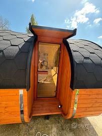Vendo sauna da esterno 6,50 mt x 2,50x 2,50 10 posti con stufa harvia 36 pro e luci a led. Nuovissima!! Pagata 16000