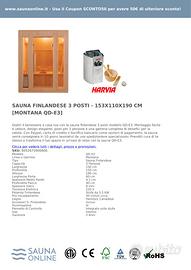 La sauna finlandese 3 posti QD-E3 della linea Montana offre un'esperienza di benessere unica per tre persone, combinando comfort e relax in uno spazio ottimizzato per l'uso domestico. Dimensionata a 153 cm di larghezza, 110 cm di profondità e 190 cm di altezza, con una porta di 60 cm, la sauna permette un accesso agevole e movimento confortevole.