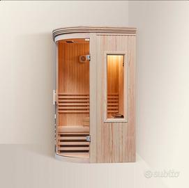 Accessori inclusi: secchio e mestolo in legno, stufa con cover in legno, pietre laviche (≈15 kg).