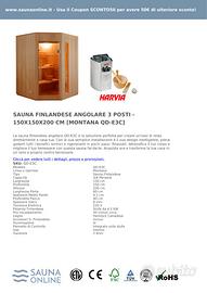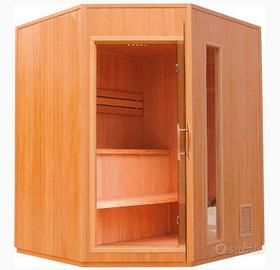 Dotata di vetro di sicurezza temperato da 6 mm e una stufa Harvia da 4,5 KW, richiede 220 V e un contatore di almeno 6 KW per performance ottimali.