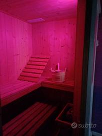 Vendo Sauna finlandese completa di tutto stufa pietre clessidra idrometro mastello e cucchiaio, adatta per 2/3 persone usata veramente poco,trasporto e smontaggio a vostro carico.Prezzo trattabile.