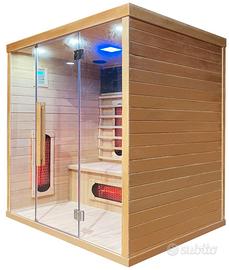 SAUNA INFRAROSSI FINLANDESE MULTIFUNZIONE 150X110X190CM - 3-4 posti CON RADIO PC MP3 + MP4 + USB + OZONO + AROMATERAPIA + BLUETOOTH + VENTILAZIONE + DOPPIO ALTOPARLANTE + LUCE CROMOTERAPIA A 7 COLORI + TIMER E LUCE DI SERVIZIO - VETRO 8MM - ELEMENTI RISCALDANTI IN CARBONIO DA 2100watt. NUOVA TECNOLOGIA CON ELEMENTI IN CARBONIO ECO-TECH.- VEDI SOTTO TUTTI GLI ACCESSORI - SUPER ACCESSORIATA;