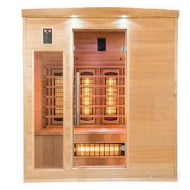 La sauna include cromoterapia e un ionizzatore per purificare l'aria, mentre l'illuminazione a LED interna ed esterna crea un'atmosfera suggestiva. Un pannello di controllo con display digitale facilita la regolazione di temperatura e tempo.