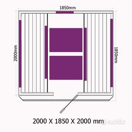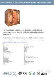 La sauna secca infrarossi QD-QM5 della linea Karma è progettata per 5 persone, offrendo un luogo ideale per rilassarsi con famiglia o amici. Misurando 185 cm sia in larghezza che profondità e 200 cm di altezza, la sauna offre ampio spazio per comfort e movimento, con una porta da 60 cm che facilita l'accesso.