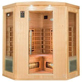 Scopri la sauna infrarossi angolare QD-CP3C della linea Timo, ideale per accogliere fino a 3 persone e perfetta per chi desidera beneficiare degli infrarossi in uno spazio privato e confortevole.