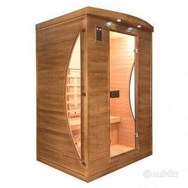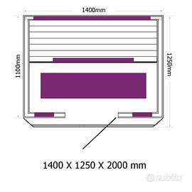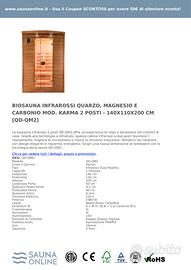 La biosauna infrarossi QD-QM2 della linea Karma è progettata per due persone, offrendo comfort e benessere in un'ampia cabina di 140x110x200 cm. Costruita con materiali di alta qualità, ha pareti da 4,2 cm isolate con lana minerale per un ottimo isolamento termico.