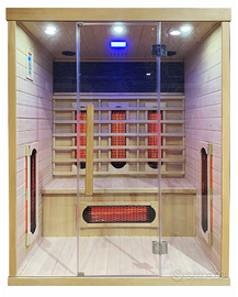 2) Sauna infrarossi 150x110 - Legno Canadese. Con Elementi Riscaldanti in Fibra di Carbonio Eco-Tech. Con Nuovo Pc - Full Optional - Luce led 7 colori - Ozono - Aromaterapia - Ventola - Luce lettura - Mp3 - Mp4 - Usb - Radio – Bluetooth al prezzo di 2200€;