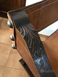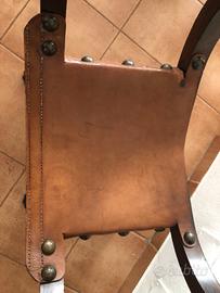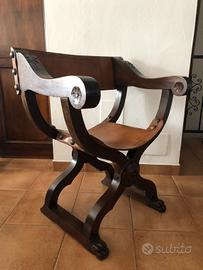 Savonarola in stile del XIX secolo restaurata, condizioni perfette, seduta e schienale in cuoio. Sono ritiro o consegna da valutare