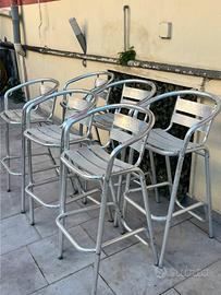 In alluminio,leggerissimi e resistenti 9 sgabelli alti( in foto solo 6 ma sono 9 ) da bar uffici o negozi in ottime condizioni.