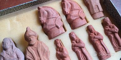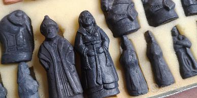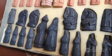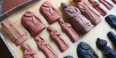 Questi scacchi sono fatti a mano in terracotta nera e rossa. Mai usati. Provengono dall'area araba compresa tra Yemen /Egitto. Antiquariato.