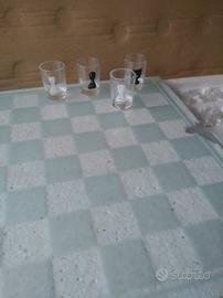 Scacchiera in vetro nuova mai usata ottimo stato con bicchierini come pedine.Per gli altri annunci digitare SPQR.