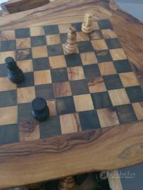 Scacchiera mai usata, costruita da falegname in legno di ulivo.