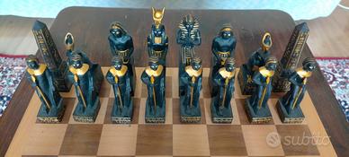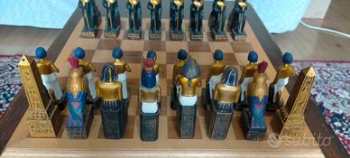 Vendesi scacchiera con pedine con stile egiziano, in ottime condizioni generali usata solo per arredamento. Dimensioni scacchiera 40 x 40 cm, invece i quadrati per le pedine è 4 x 4 cm. Posso valutare di vendere anche le pedine separatamente dalla scacchiera. Prezzo trattabile