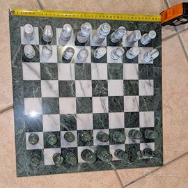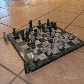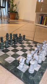 Vendo scacchiera in marmo bianco e verde da arredo in ottime condizioni. Dimensioni: 40 cm × 40 cm × 1 cm; Peso: circa 5 kg; Il fondo, sia della scacchiera che di ogni singola pedina è in feltro verde. Attenzione: nonostante la scacchiera sia in perfette condizioni alcune pedine posso presentare piccole imperfezioni causate da urti, alcune di queste sono state aggiustate con della colla. Per qualsiasi informazione e/o foto specifica dei singoli pezzi non esitate a contattarmi in privato, sarò lieto di aiutarvi! Prezzo trattabile !
