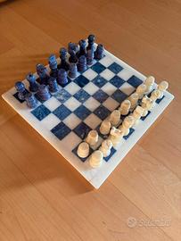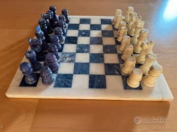 Scacchiera in marmo bianca e blu, base 36 x 36 cm